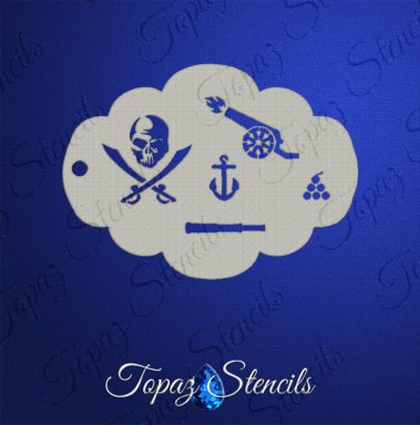 Arg matey! Pirates will rejoice when you have these fun elements to add to your designs. Perfectly sized for cheeks, foreheads and arms alike. Stencil size is 4.25" x 5.75" for easy handling whether stamping or air brushing.