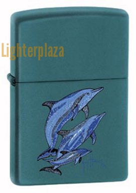 Zippo lighter 2002. ZIPPO SPOTTED DOLPHIN. GUY HARVEY DESIGN. Teal Matte finish.
