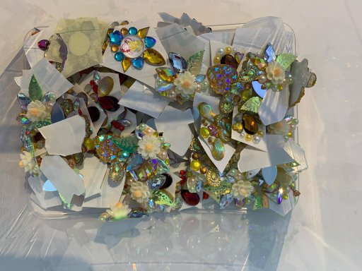 This package contains 15 pieces of already made bling in the color shade yellow. They are 15 random bling pieces that I made on double sided medical tape.