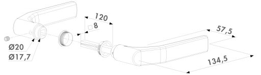 HANDLE PAIR IN ALUMINIUM FOR HYBRID LOCKS Item No. 3006J-H Handle pair in aluminium with square 120 mm spindle for Hybrid locks.