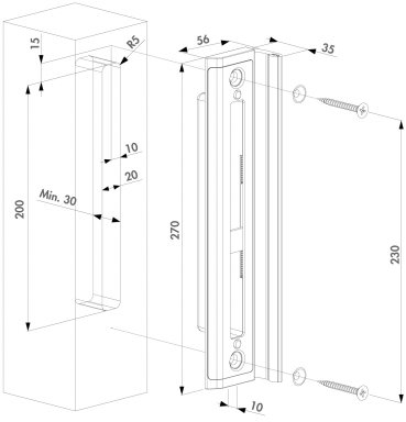 HYBRID KEEP WOOD Item No. SHKW-ALUM Stainless steel keep for insert locks. This unique keep in combination with the insert lock ensures a strong gate anchoring. This configuration includes wood screws.